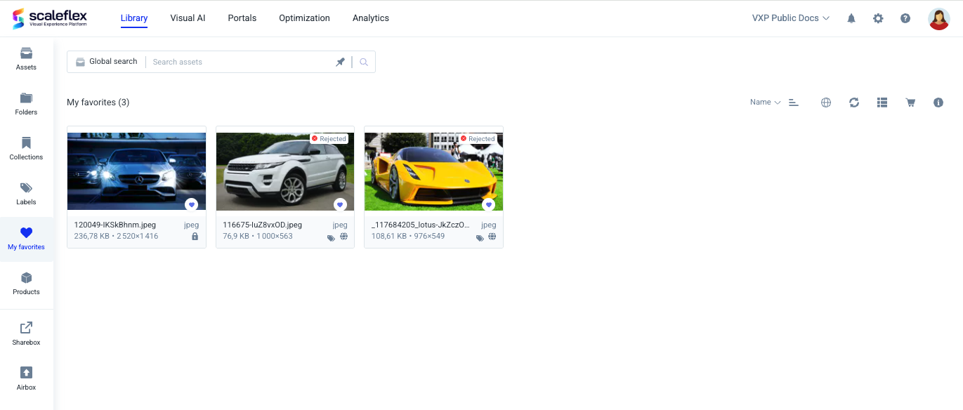 Click the heart icon in the top menu of the asset window to add an asset to your personal [**My Favorites**](https://docs.scaleflex.com/digital-asset-management-dam/library/my-favorites) list.