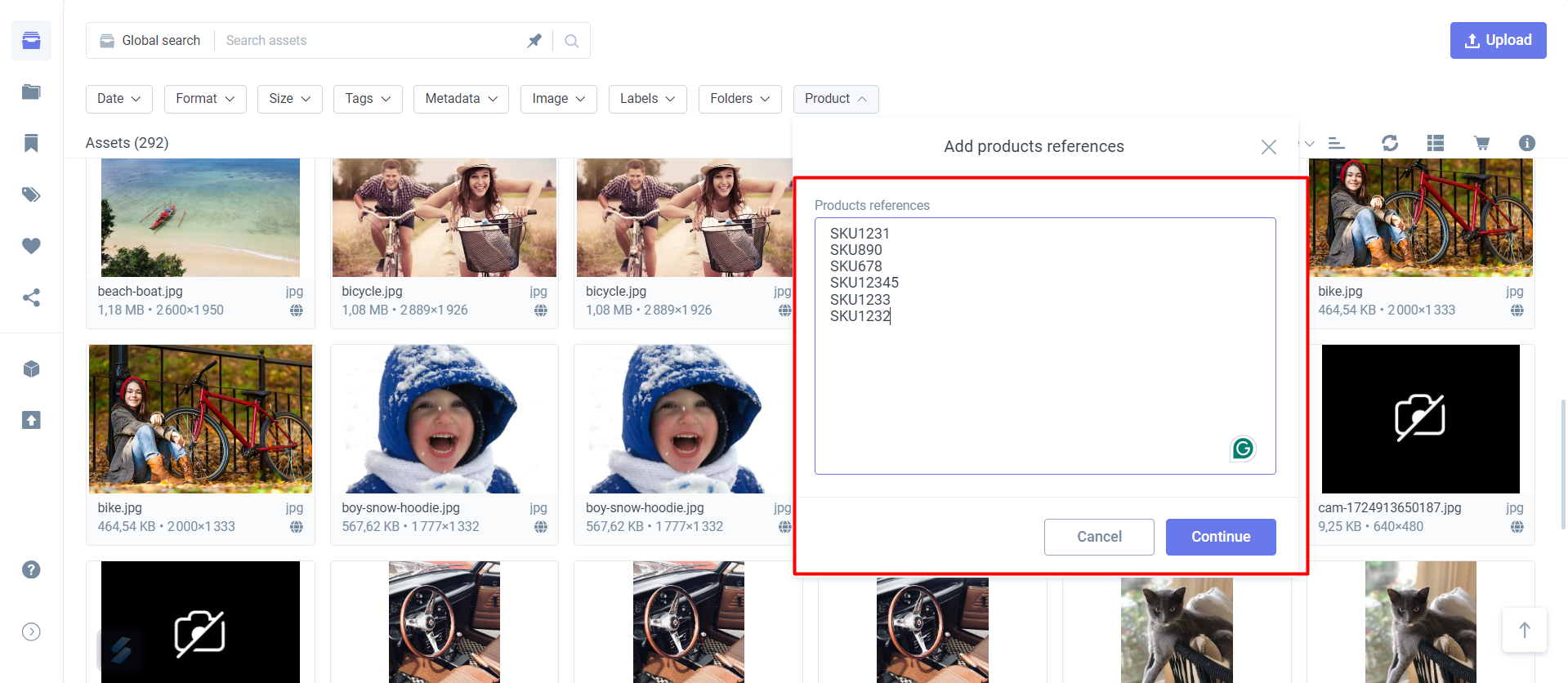 The Product feature helps you organize and quickly find files by grouping them using specific product references. Once enabled, users can add two new metadata fields—**Product Reference** and **Product Position**—to their assets.